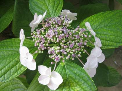 近づいてみると、まわりの白い花と中央の小さな花や蕾がとても複雑にできています。