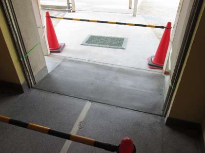 破損個所があり、給食搬入に支障も出たので、工事業者様に補修をしていただきました。