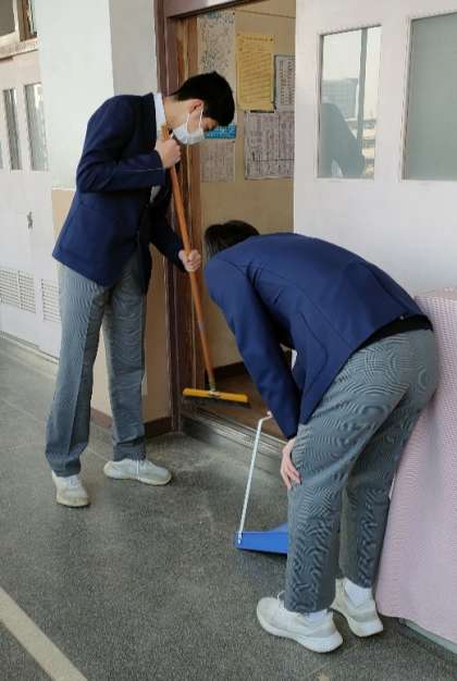 清掃当番も頑張ってくれていたのですが、まだ残っていた砂を自主的に掃除してくれていました。