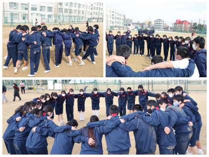 クラス対抗戦の前には、クラスごとに円陣を組んで気合いを入れました。