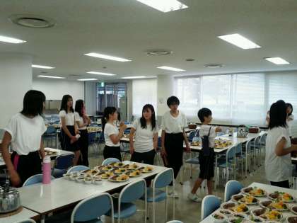 活動を終えて、入浴後、食事の準備中です。