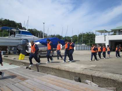 あいさつの後、カッターに乗り込みます。