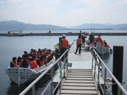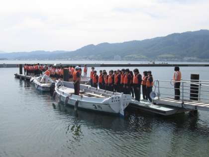 いざ出陣。船ですから、当然揺れ、櫂も長くて重く、最初は大変です。