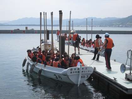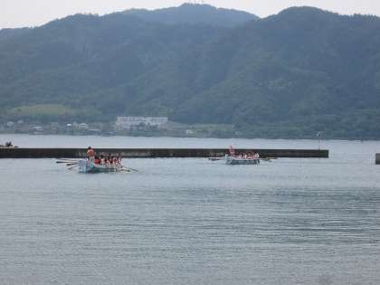 櫂立て、櫂備えから、声をあげて漕ぎだします。