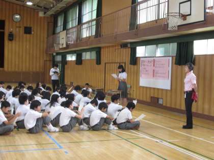 今朝は、授業についてのアンケートより、みんなの意見を学年代表が発表しました。