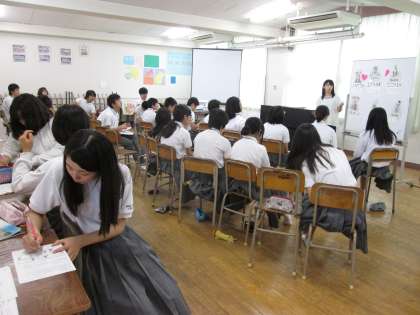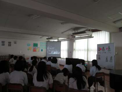 3年生は音楽。オペラに親しむ授業でした。なかなか大人でも見る機会のないオペラですが、様々な要素の入った総合芸術であることがわかり、DVD教材を活用することで、生徒にわかりやすく、一度実際に見てみたいという興味関心を抱かせました。