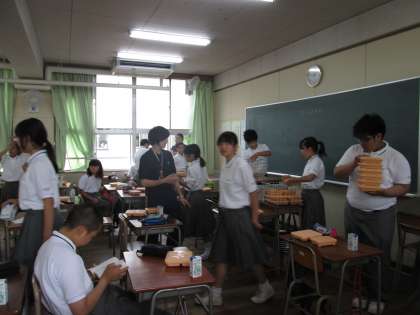 全員給食の1年と2年。やはり1年の方が「いただきます」までに時間がかかります。
