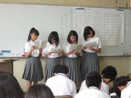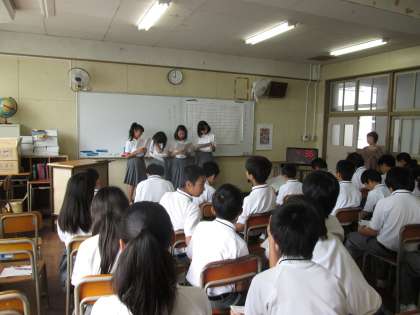 各クラス4人組の9班編成で、昔話やおとぎ話のアレンジ版を自分たちで考案し、創意工夫した物語を発表し、お互いに審査しました。