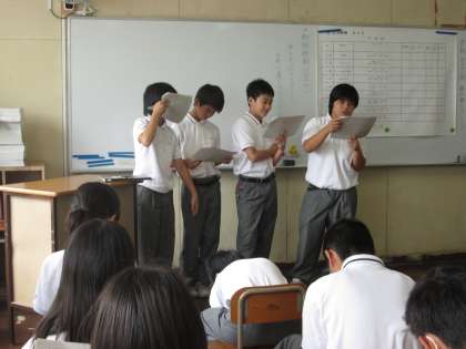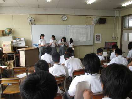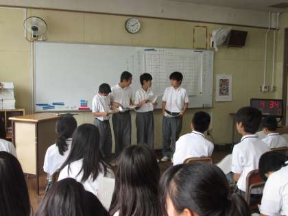 まだまだ1年生であり、発表の声の大きさや表現力には不十分なところもありましたが、ストーリーに創意工夫の跡が見られ、言語活動のスタートしては上々の滑り出しであったと思います。