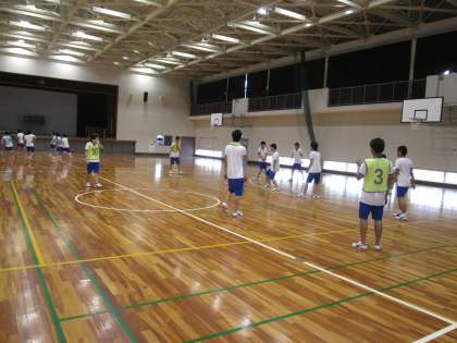 体育館では、2年男子がバスケットボールのゲームを行っていました。