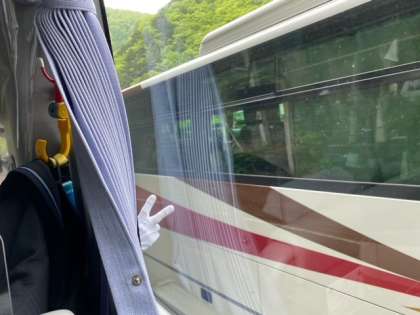 細い山道が続いていますが、運転手さんたちの安全運転で順調に進んでいます。