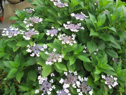 玄関のあじさい。満開をこえたのか、少しずつ花弁が落ち始めました。