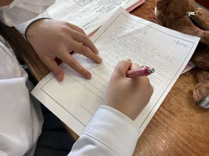 普段使わない時候のあいさつや手紙の書き方に注意しながら、下書きをしました。