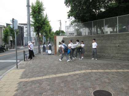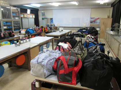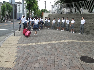 明日から出発する3年生。旅行の荷物をもって登校です。