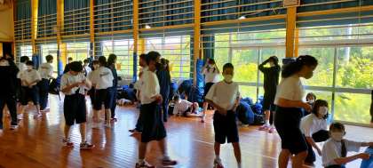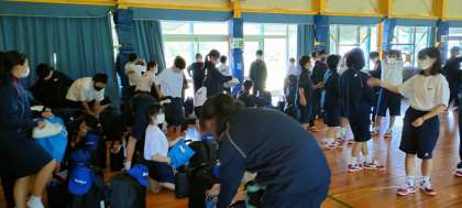 早速荷物を体育館に置きます。