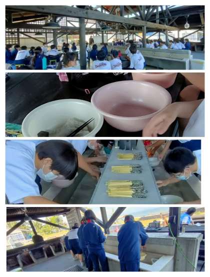 野外炊飯場でマイ箸作りをしています。