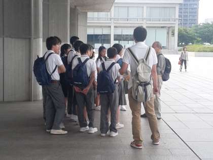 各クラスが二つに分かれ、スタッフさんのもと、平和の学び、広島学習が始まりました。