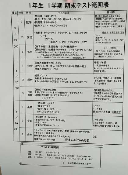 今週末に勉強したい人は範囲表を見て勉強してください。