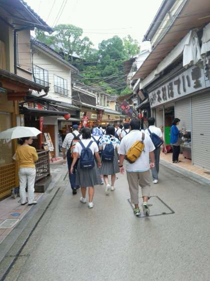 昼食の前後で、散策と土産の購入、グルメに走る生徒も。