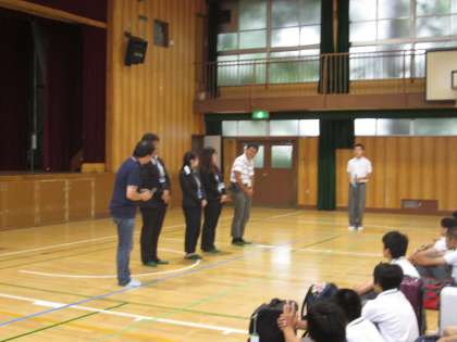 参加予定者、全員揃っての出発式。実行委員の司会進行のもと、先生から同行する添乗員さんと写真屋さんの紹介がありました。