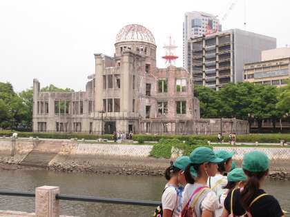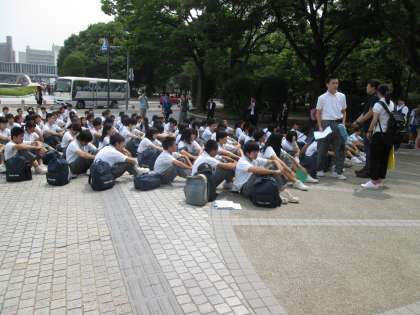 平和公園は小学生、中学生、団体客、そして外国人観光客であふれていました。