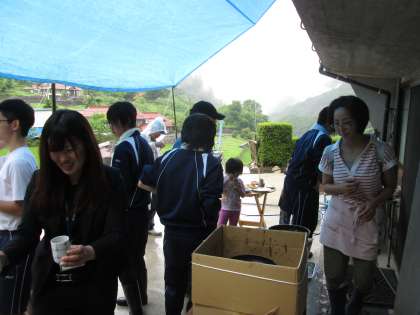 そして、小笠原家は棚田の見える絶好のロケーションにありました。ちょうどお昼ごはん中。生徒たちは、何と!そうめん流しを手伝っていました。半分に割った竹を使った本格的なそうめん流し。事務次長のお母様から、「先生たちもいかがかな」と、仕事を忘れてご馳走に。久しぶりにそうめん流しを堪能しました。