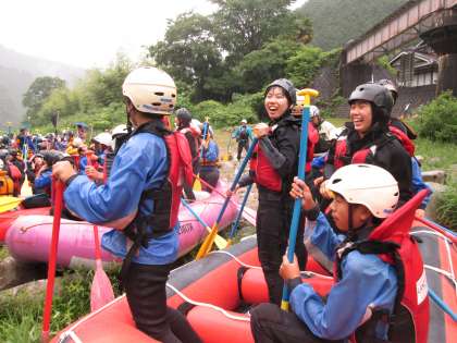 ほとんどの生徒はラフティングは初めて。みんなワクワクドキドキで、興奮気味です。