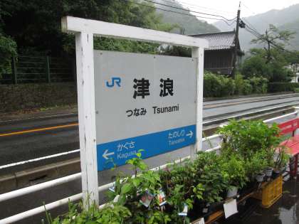 途中、廃線となった可部線の「津波駅」。こんなところでも、かつて川の氾濫の津波があったんですね。