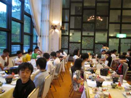 お風呂の後は、待ちに待った夕食。お腹いっぱいいただきました。