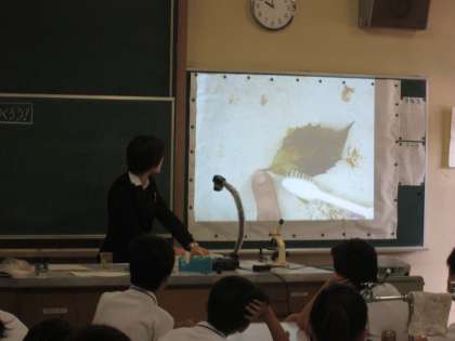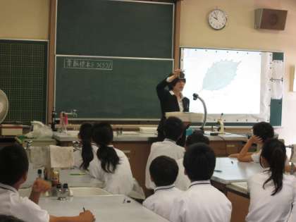 2限目は1年の理科。葉脈標本づくりの実験でした。