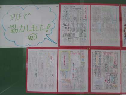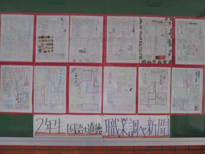 玄関の掲示板に、職業調べの取り組みを発展させて完成した新聞が、このほど発表されました。ぜひ、ご覧ください。