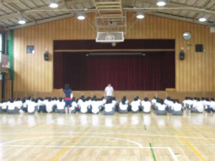 修学旅行が終わって、ちょっと一息。しかし、今朝の集会の集合状態は悪く、先生から注意を受けていました。