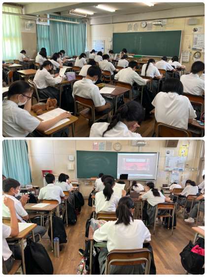 9月末の文化祭に向けて、過去の合唱コンクールの優勝クラスの合唱を観て学年の課題曲と自由曲5曲を聴きました。