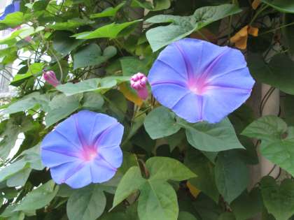 朝顔は青紫がとても濃く、元気です。