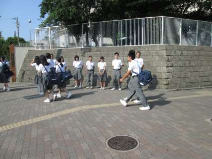 早朝から太陽ギラギラですが、負けずにあいさつ運動に取り組んでくれています。