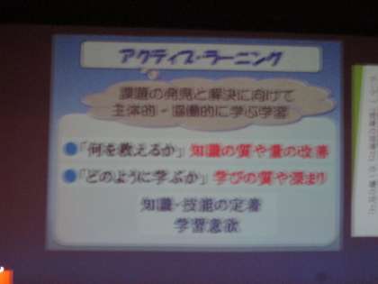 続いて、教育センターの指導主事より、教員の指導力向上に向けて、今年度の取り組みが報告されました。また、本校も参加する「スタンダードモデル事業」の取り組みの概要も報告されました。