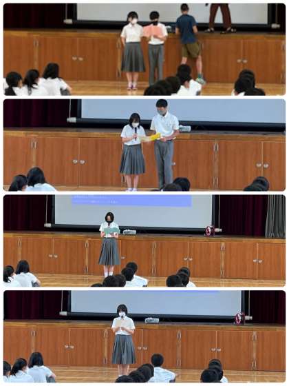 まず各クラスの学級代表の人たちと生徒会執行部から、1学期の2年生の様子と振りかえりについて話してもらいました。