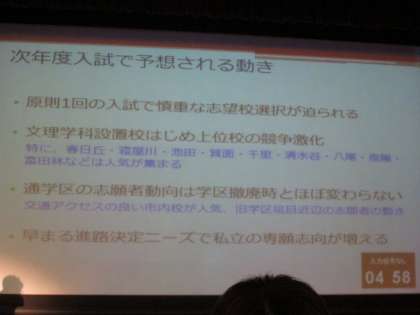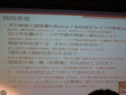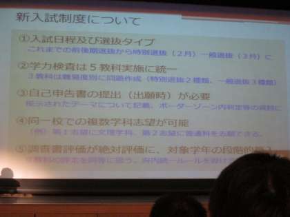 説明会の中の特別講演で、公立高校の新入試制度について、お話を伺いました。