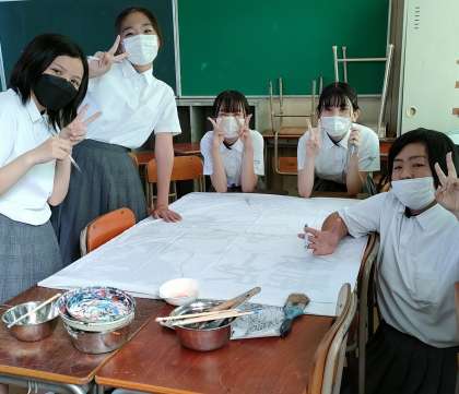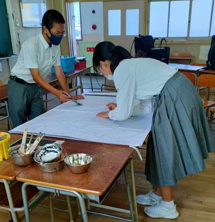 放課後に学級旗の下書きを行いました。