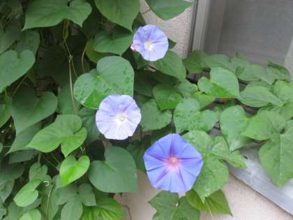 朝顔は今日も元気。花弁のような青さの空が待ち遠しいです。