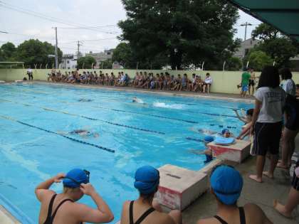 個人種目の背泳ぎ、平泳ぎ、クロールに続いて、学級対抗リレーが始まりました。