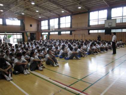 月曜日は毎週全校集会。本日は、8時25分、集合状態や私語がなくならず、担当の先生からお叱りの言葉がありました。