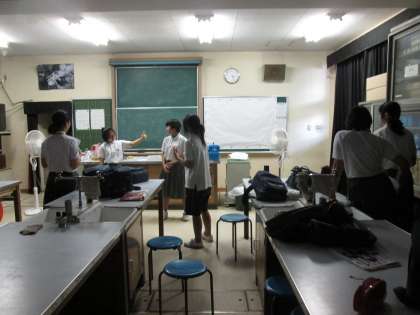 エアコンのない理科室で、黙々と演劇部が練習に励んでいます。
