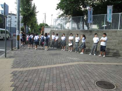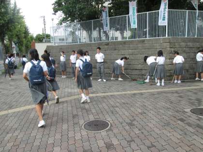 今学期最後の生徒会によるあいさつ運動、部活動による清掃活動です。