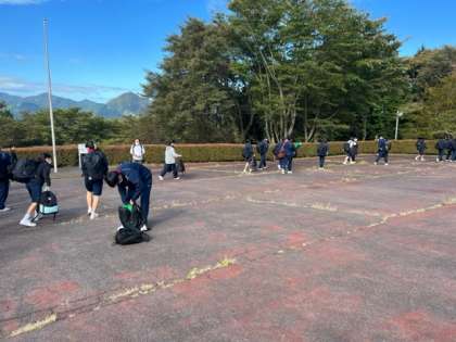 2日間お世話になった施設を掃除し終え、今から野外炊飯のためキャンプ場に向かいます。