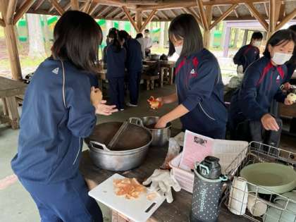 説明をしっかり聞いて、カレー作りに取り組みます。
