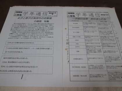 各学年より学年通信が本日発行されています。