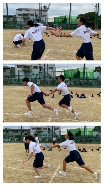 リレーのバトンパスも新競技の「北中運送」も、作戦会議と実践を何度も繰り返していました。