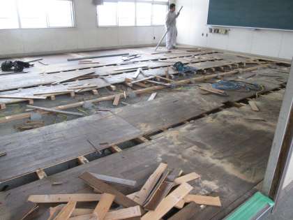 今回、夏休みを利用して、床の張り替え工事が開始されました。