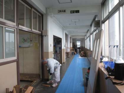 南館の4階。3年の教室はあちこち床が傷んでいて・・・。